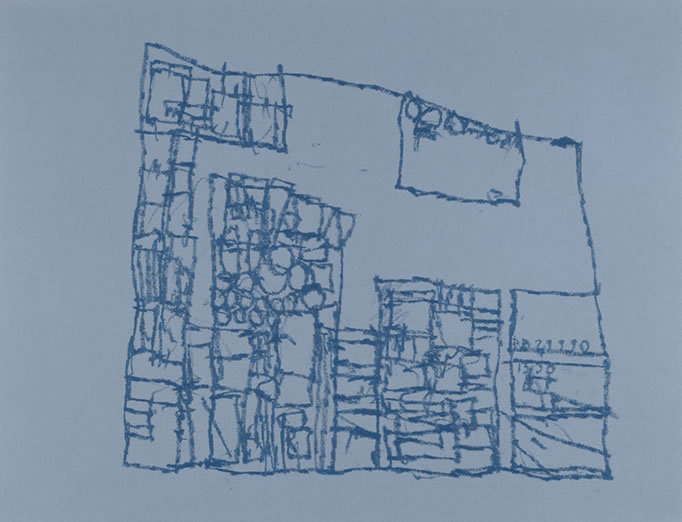 Atelier 2 1990 oliepastel op papier 50 x 65 cm. PB. 29.9.90.13.30